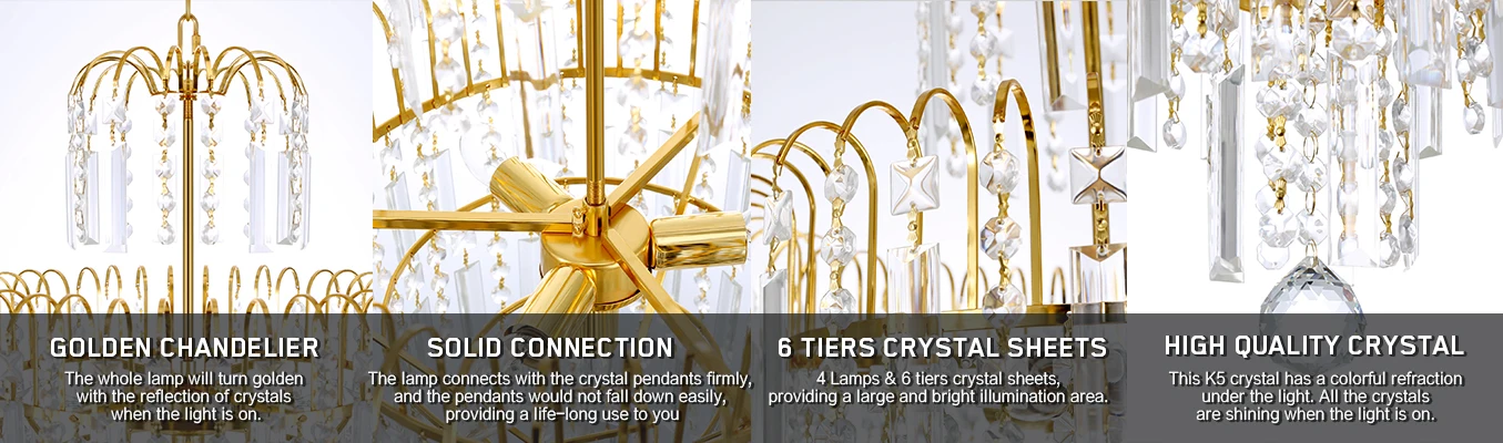 GOLD CRYSTAL CHANDELIER CEILING LIGHT WITH 4 LIGHTS