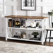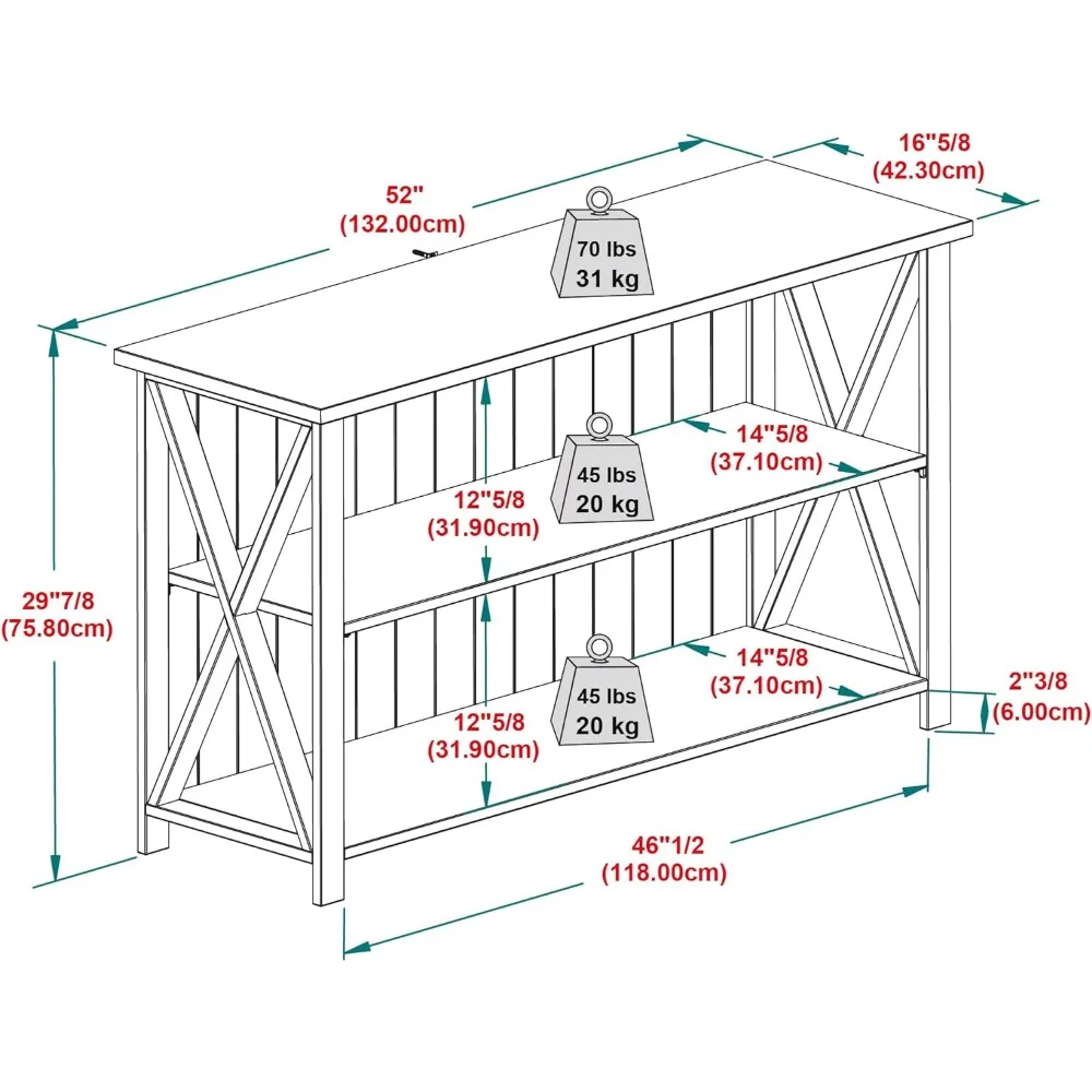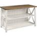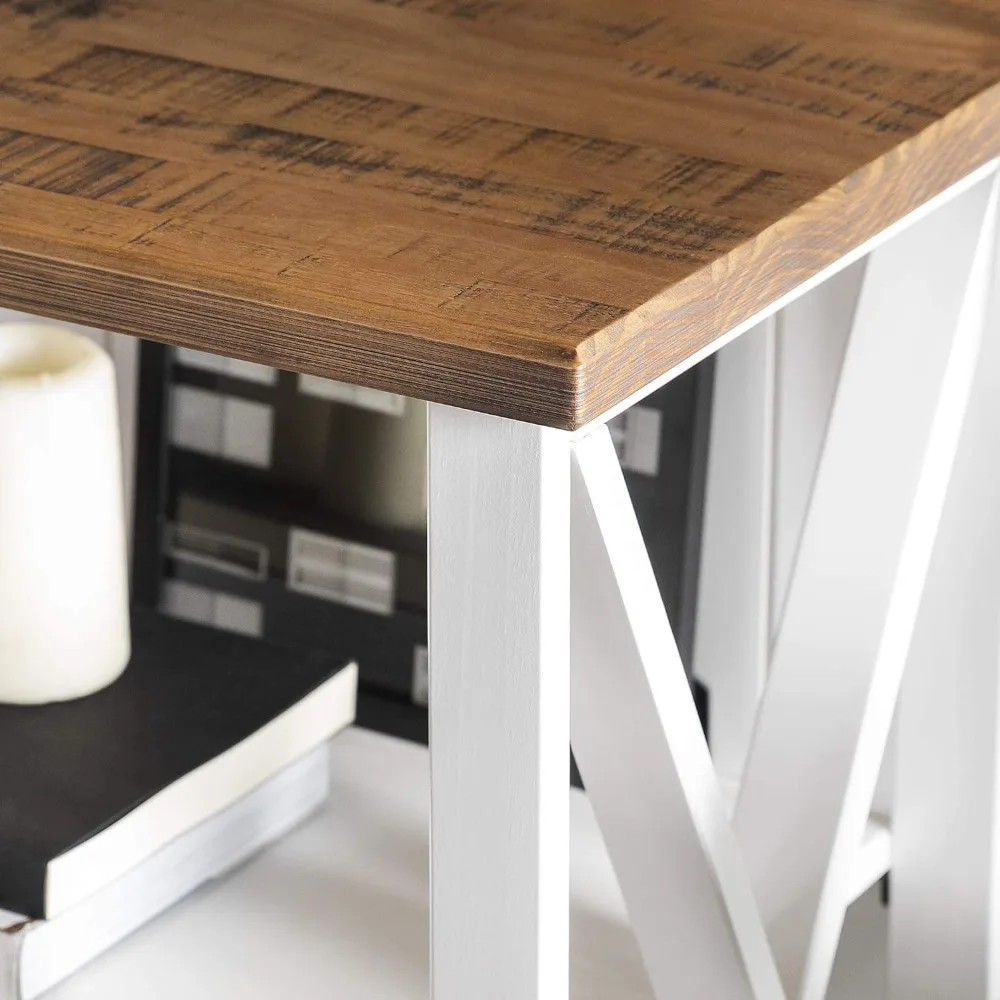 Your new perfect spot for books and bouquets is this charming farmhouse storage console. A grooved, beadboard backer and X sides cater to your cozy country aesthetic. Its inviting design fits right in as a bookcase in the home office or a sofa table in the living room. One fixed, open shelf inside the console steadily supports trinkets, holiday decor, or office supplies. The solid wood build is responsibly harvested from renewable forests, so you can decorate in good conscience.