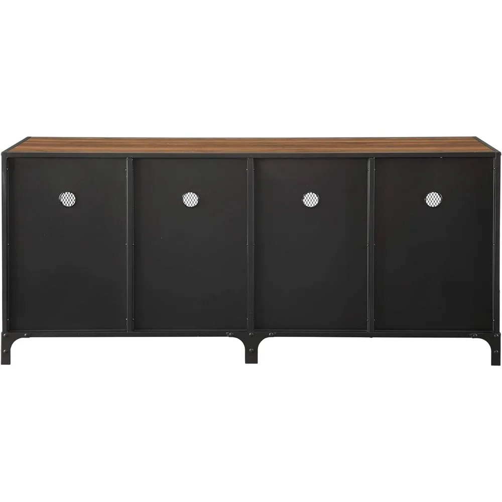 This urban industrial storage console will make a great addition to your home whether you use it as an entertainment center, storage cabinet, or kitchen buffet. With a gorgeous blend of metal hardware, mesh metal doors, and high-grade MDF that's finished with a durable laminate, this piece will add a sense of character to your living room or bedroom. Two separated cabinets on both sides of the large center cabinet let you easily organize your items out. Additionally, with adjustable shelves and cord management options, this console will become precisely what you desire for your home. It can accommodate TVs up to 65-inches.