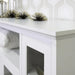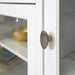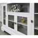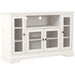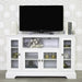 Give a transitional feel into your living room with this highboy console. This console is a practical piece ideal for storing room essentials, from your movies to your books and décor, as it has open and closed shelving. Functioning as a TV stand and entertainment center, this media console can accommodate most flat panel TVs up to 55 inches and has a cable management feature in the back for a tidy appearance. Side and middle cabinets feature adjustable shelving so you can easily fit your items inside, with tempered glass doors for a stylish look.
