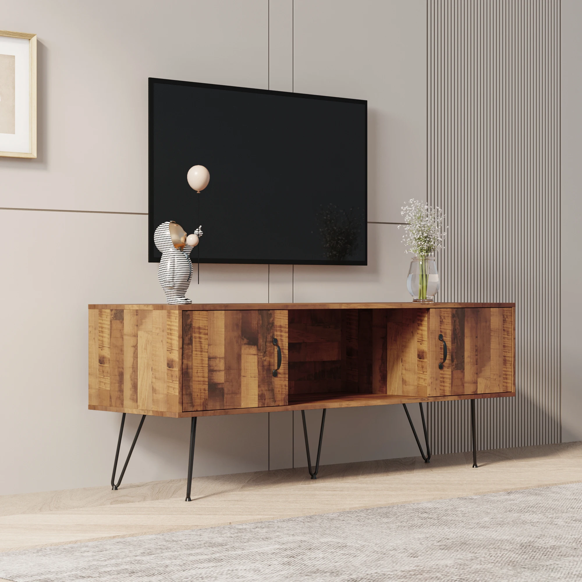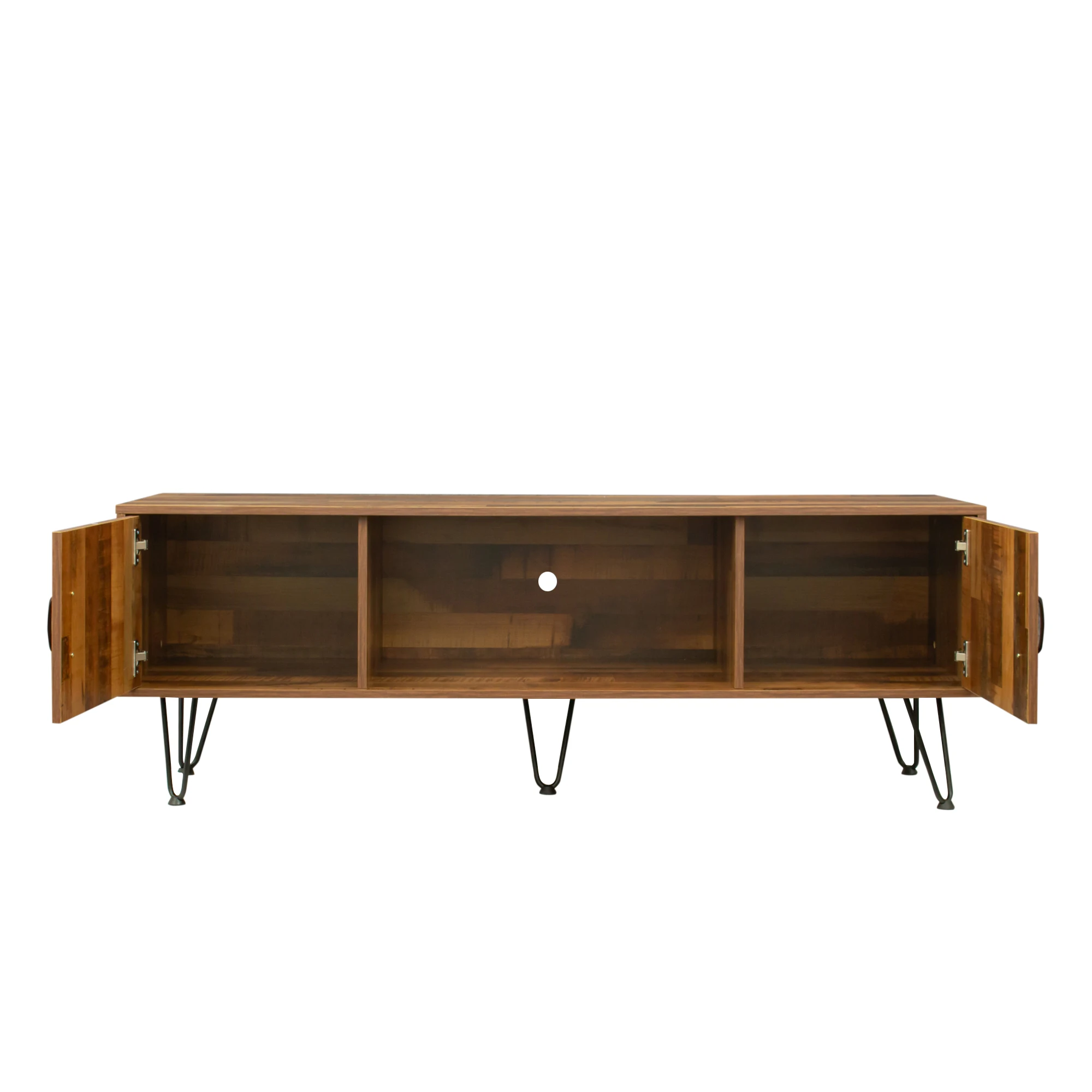 TV Media Stand, 60 inch Wide , Modern Industrial, Living Room Entertainment Center, Storage Shelves and Cabinets