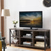 - Shelves and Cable Management Simplify Your Life: This industrial TV stand is designed for simplifying your life. Its 4 open shelves on the side are the perfect perch for books and games, and open middle shelves can easily hold a media console or cable box. And cable management is included, so cords won' t be tangled.