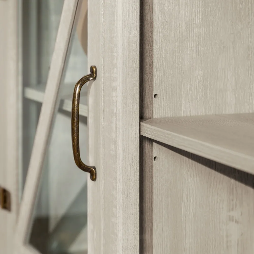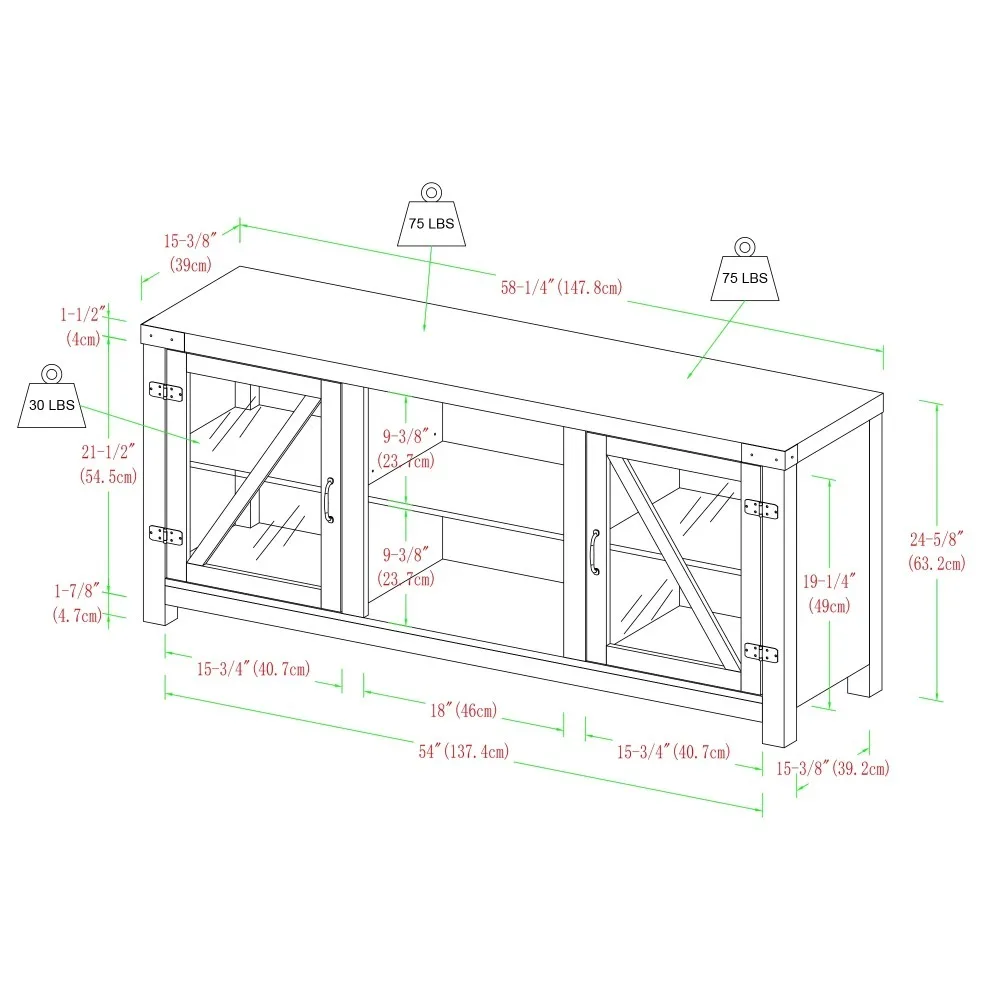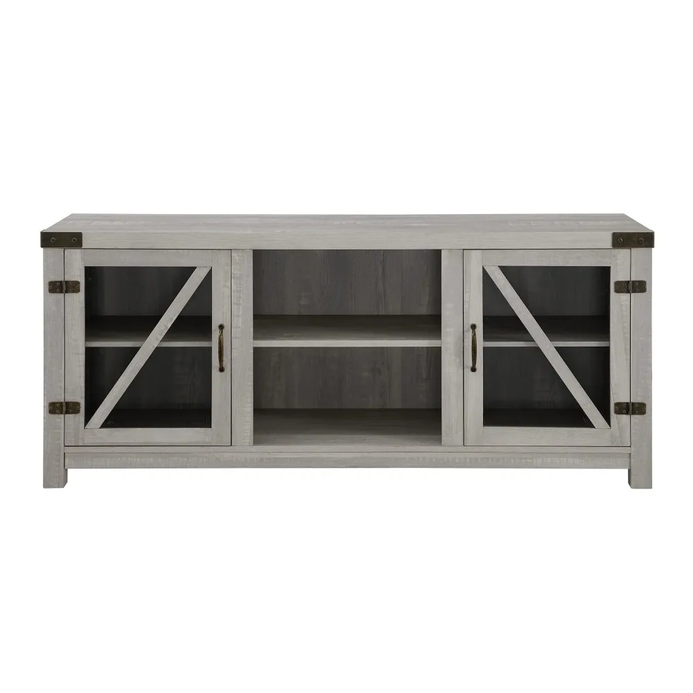 TV Stand, Modern Farmhouse Glass Door for TVs Up To 65", Stone Grey, Tv Stand Living Room Furniture