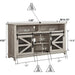 - ROOMY AND MULTIFUNCTIONAL:Each cabinet has one shelve adjustable with 3 heights to fit for items with different sizes,providing customizable organization for media, electronics, accessories, books, or decor.Top Semi-open shelf for sound bar storage.Four pre-punched large cutouts help to keep wires free of clutter.Sliding barn doors on the TV stand for convenient access to cabinets while space saving. You can also choose to slide the door to any side of the TV console for a clean, organized look. It can work as a TV stand in your living room, a storage cabinet in your bedroom, or a buffet in your kitchen or dining room cabinet in the bedroom.