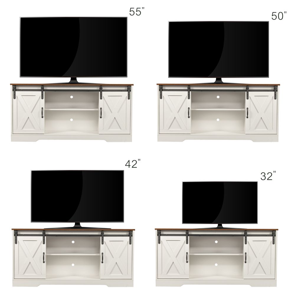 【Sliding Barn Doors】Two movable barn doors on the TV stand for convenient access to cabinets. Designed-in screws for smooth slide.