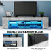 - [TV Stand with LED LIGHTS]: The sleek grey white TV stand boasts a radiant multi-color ambilight LED feature with a remote control, offering 29 dynamic styles and over color options for personalized ambience.