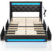 Twin Bed Frame With LED Lights And Charging Station, Upholstered Bed With Drawers, Wooden Planks, Noiseless And Easy To Assemble