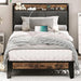 Twin Bed Frames, Storage Headboard with Charging Station, Solid and Stable, Noise Free, No Box Spring Needed, Easy Assembly