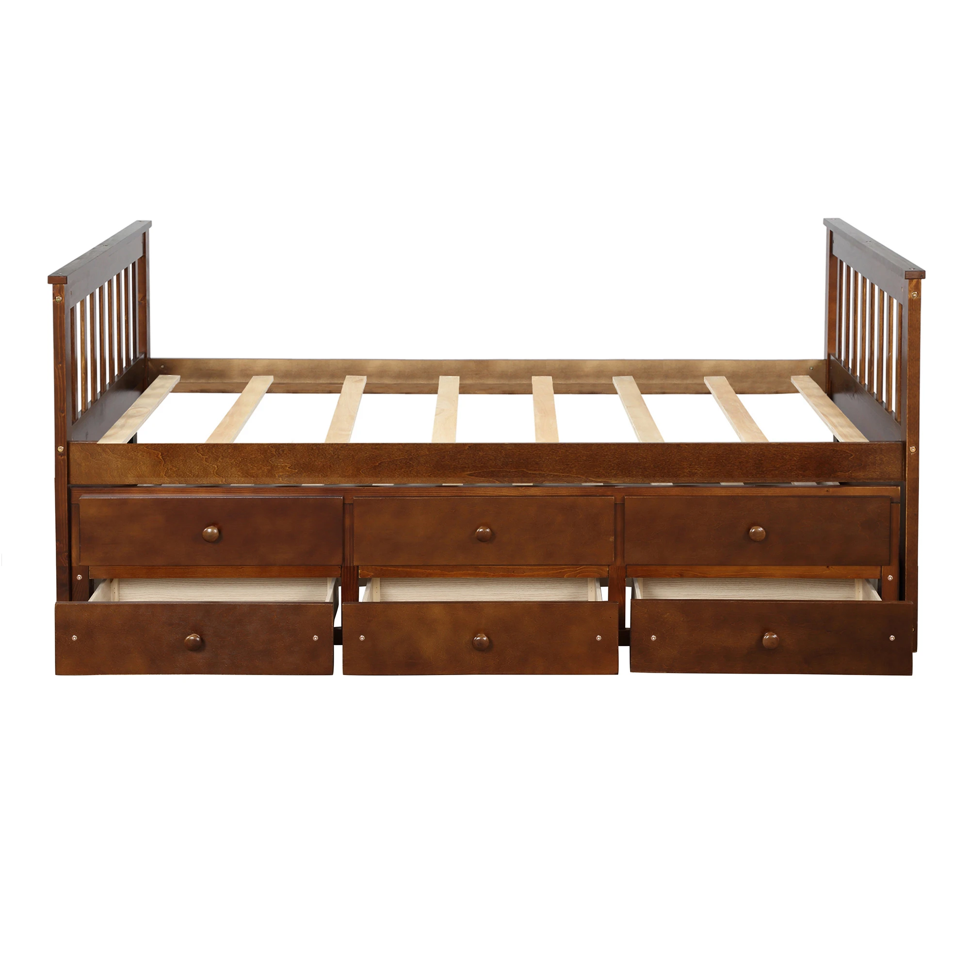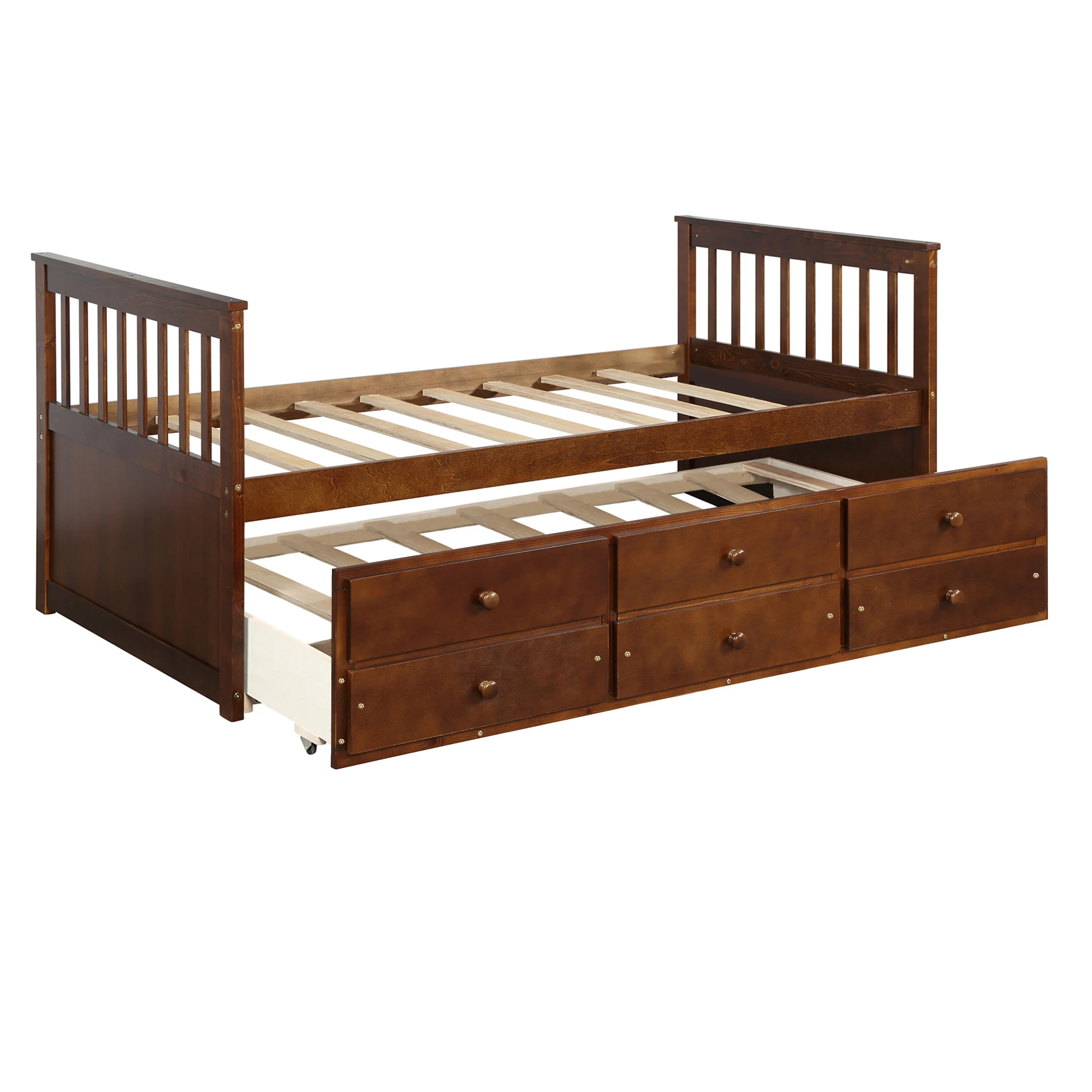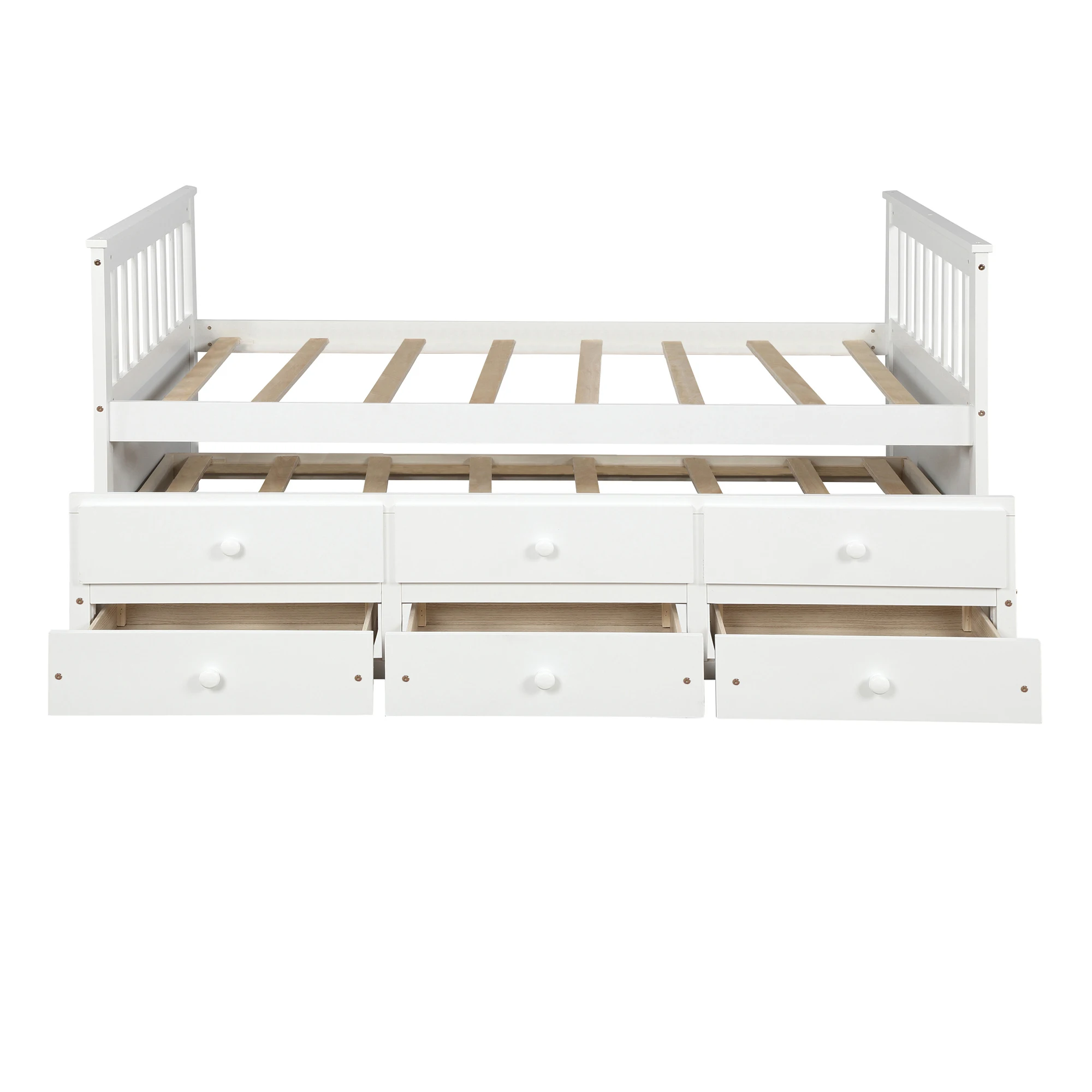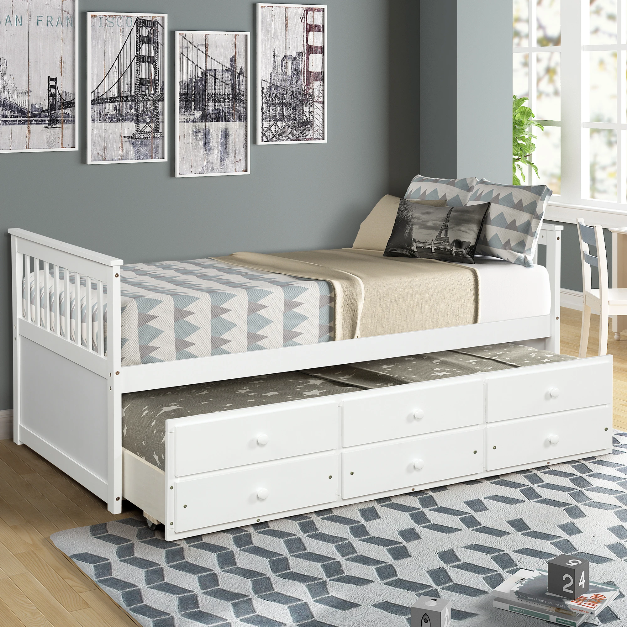 【THREE IN ONE 】Three drawer built into the trundle provide even more storage while the trundle bed underneath the twin bed features hideaway for space saving purpose and could be pulled out to serve as a guest bed when need be