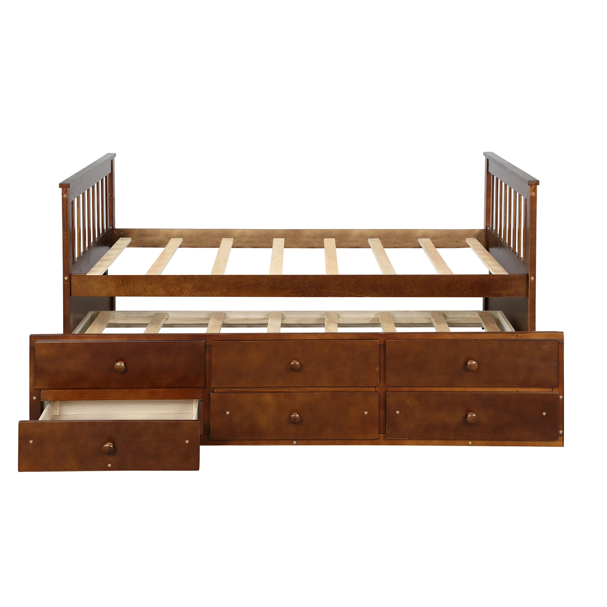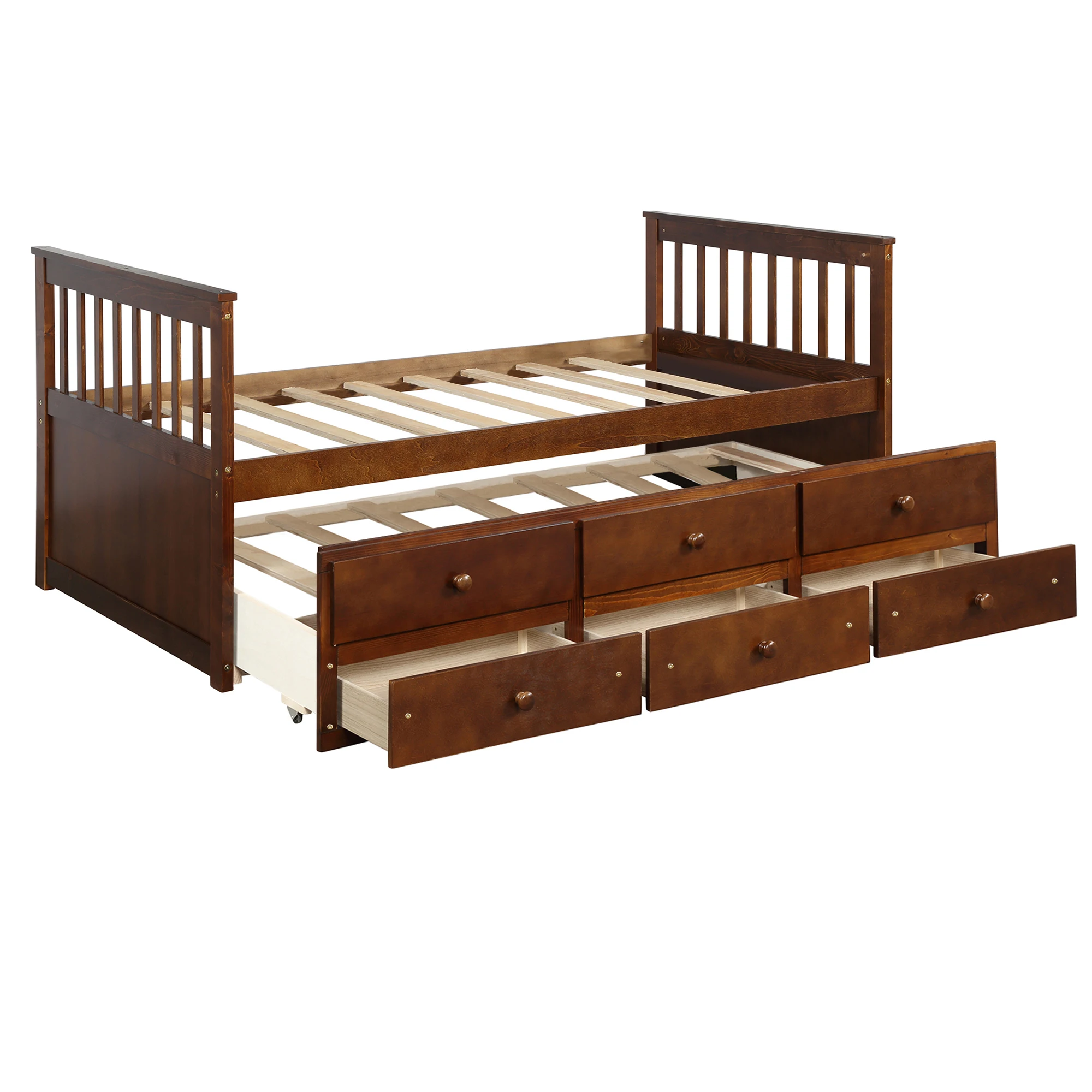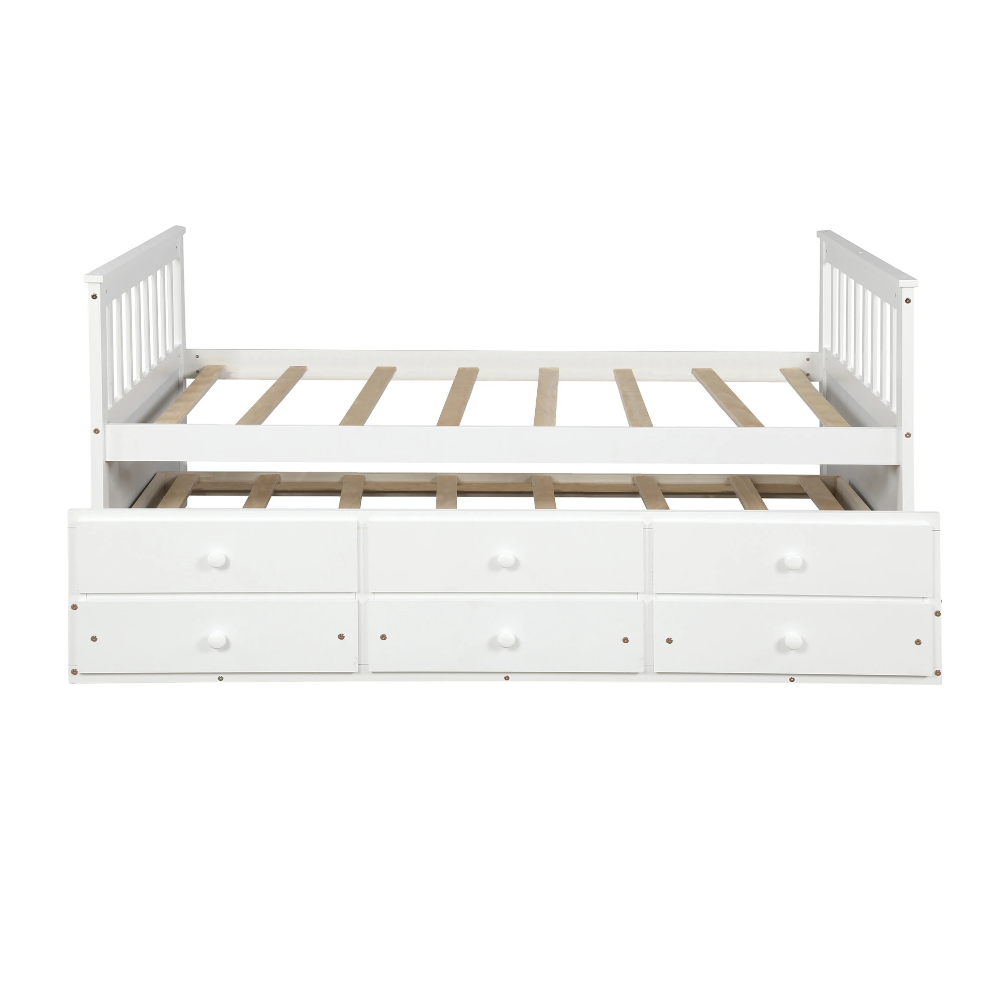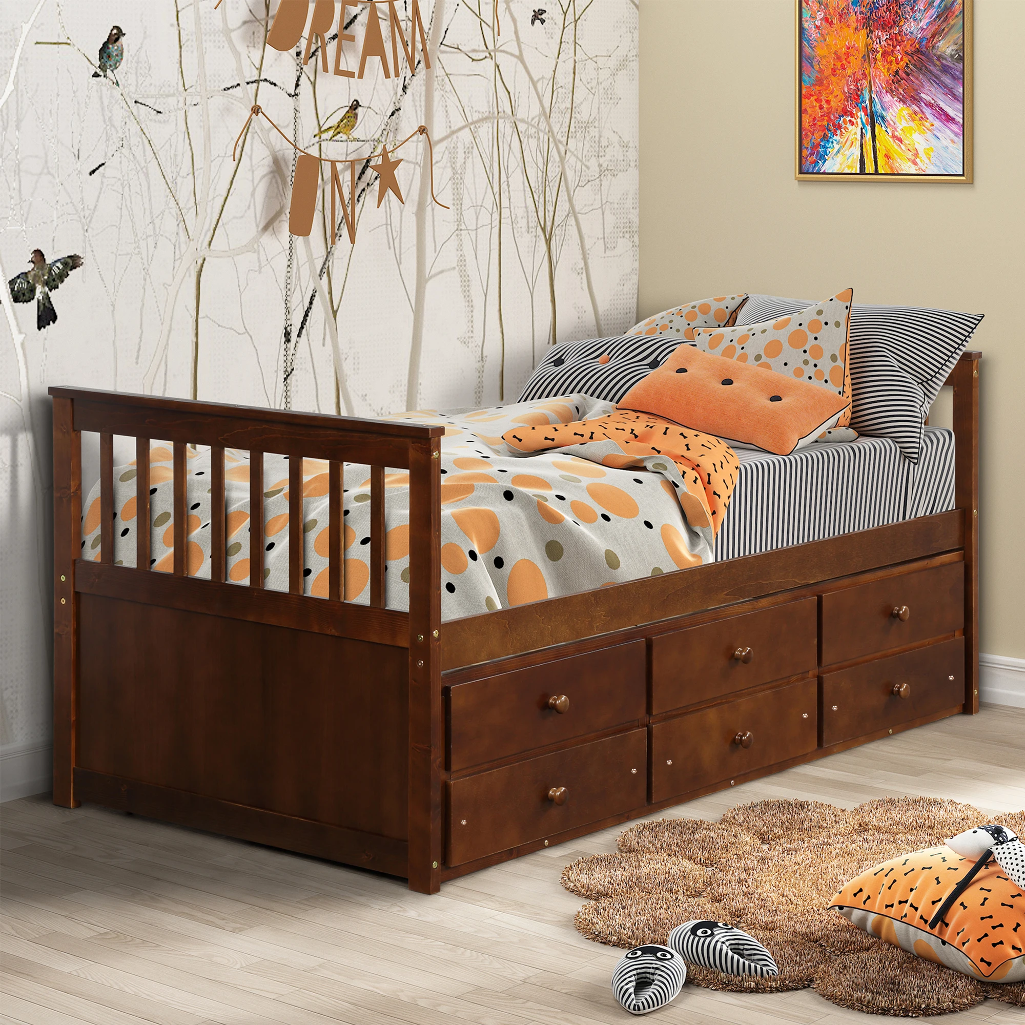 【THREE IN ONE 】Three drawer built into the trundle provide even more storage while the trundle bed underneath the twin bed features hideaway for space saving purpose and could be pulled out to serve as a guest bed when need be