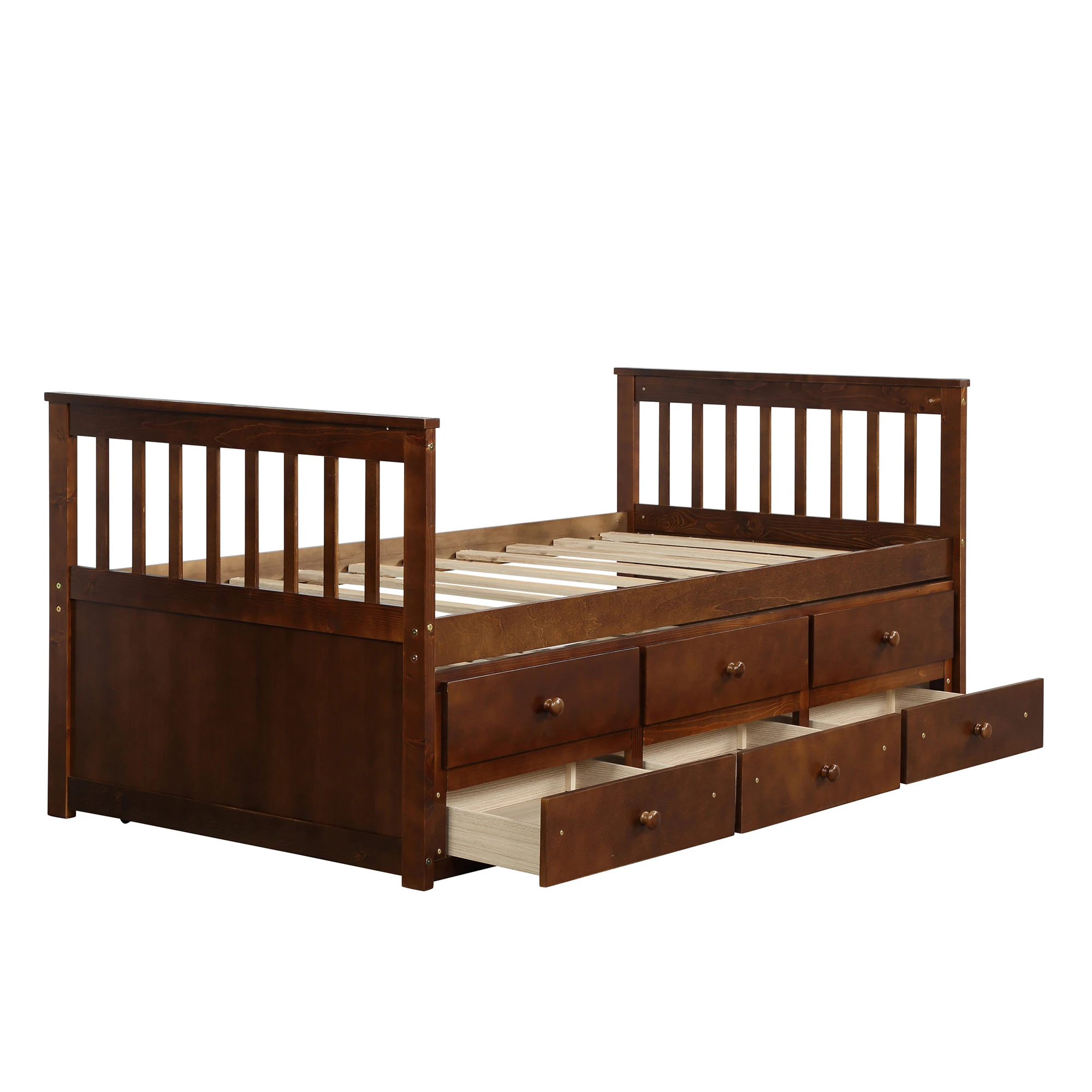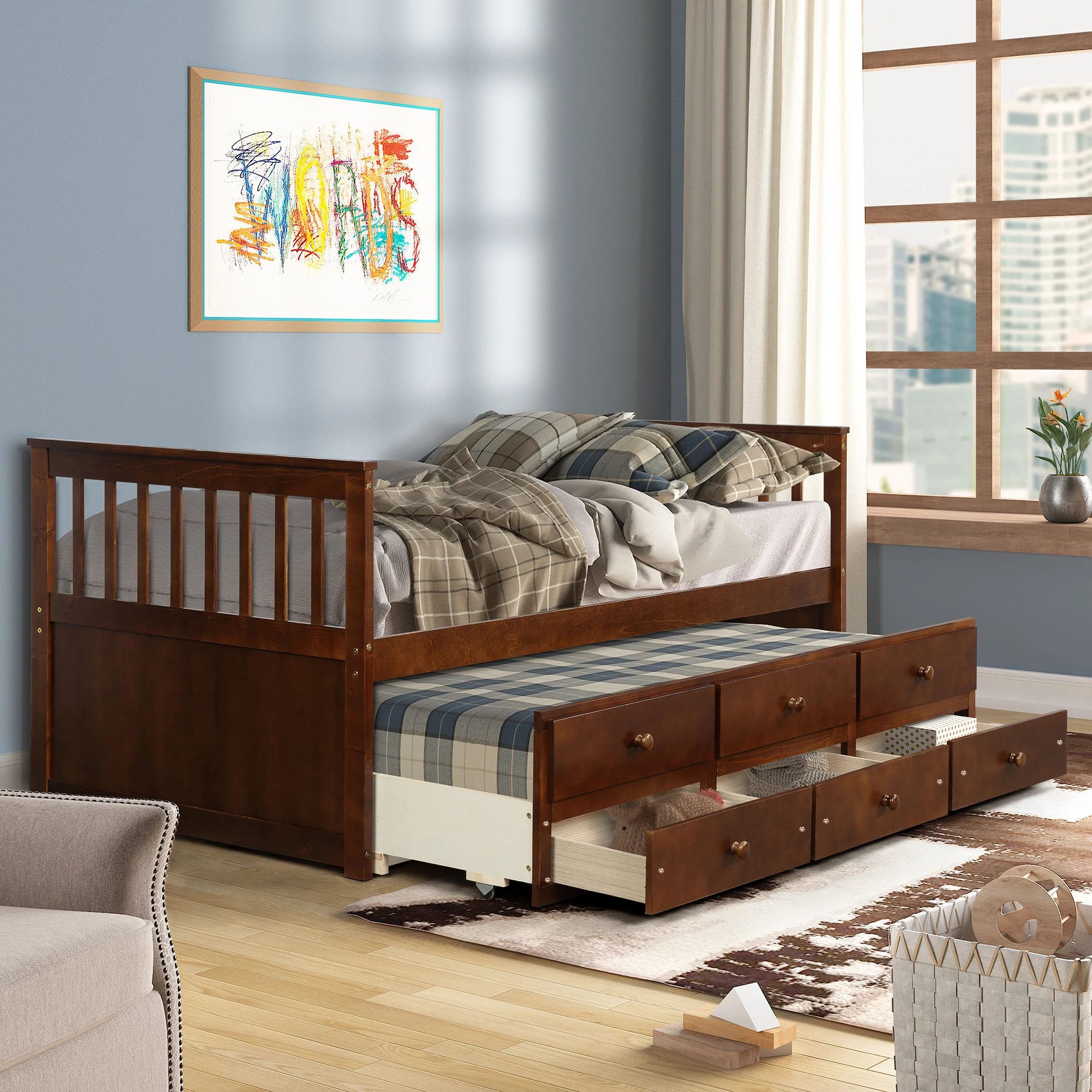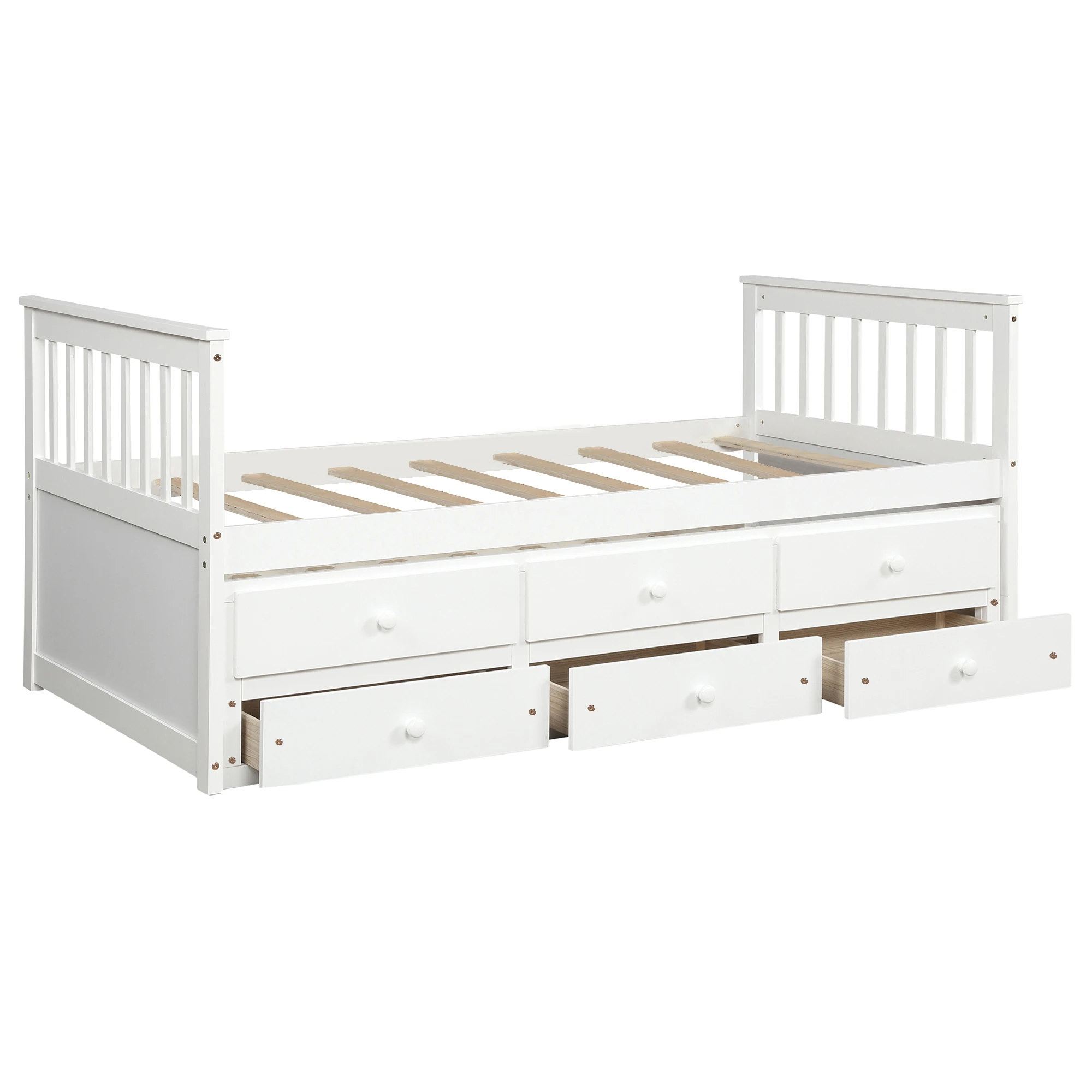 Twin Captain's Bed Storage Daybed with Trundle Bed and 3 Storage Drawers for Kids Teens and Adults
