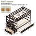 Twin Over Twin Bunk Bed with Trundle Stairway and Storage Shelf Drawer Espresso