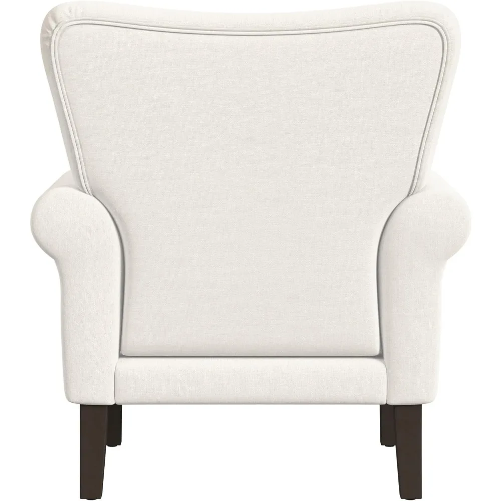 Upholstered Rolled Arm Wingback Living Room & Bedroom | Decorative Home Furniture Accent Chair Cream Solid Woven Freight Free