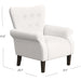 Classic rolled arm chair offers comfort and style with a button tufted seat back. This textured solid fabric creates a textured feel and a complex appearance, enhanced by espresso wood finished legs. This Rolled Arm Accent Chair has a timeless appeal that complements a broad range of home décor. Use one accent chair in your living room or bedroom or pair two together for a fashionable seating solution. Easy to assemble and maintain.