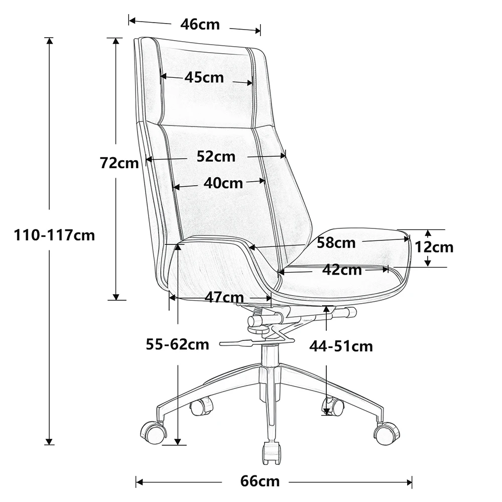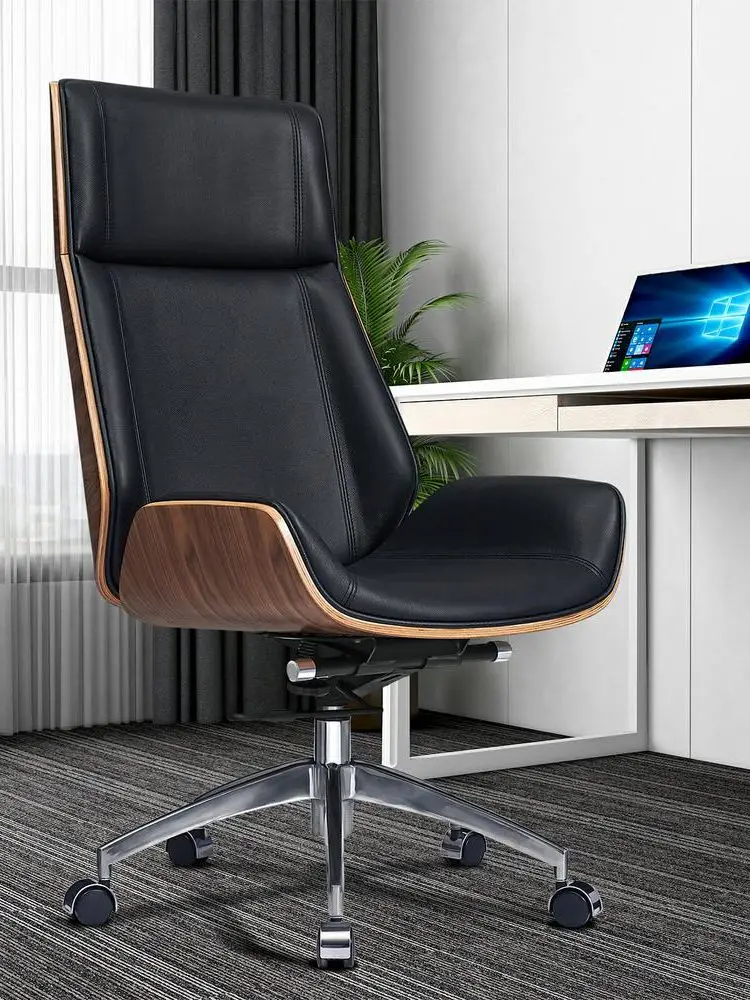 Genuine Leather Office Chair Chief Desk Ergonomic Swivel Walnut Wood Chair