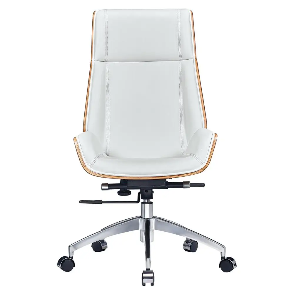 US Stock Wood Frame Genuine Leather Office Chair Chief Desk Ergonomic Swivel Chair