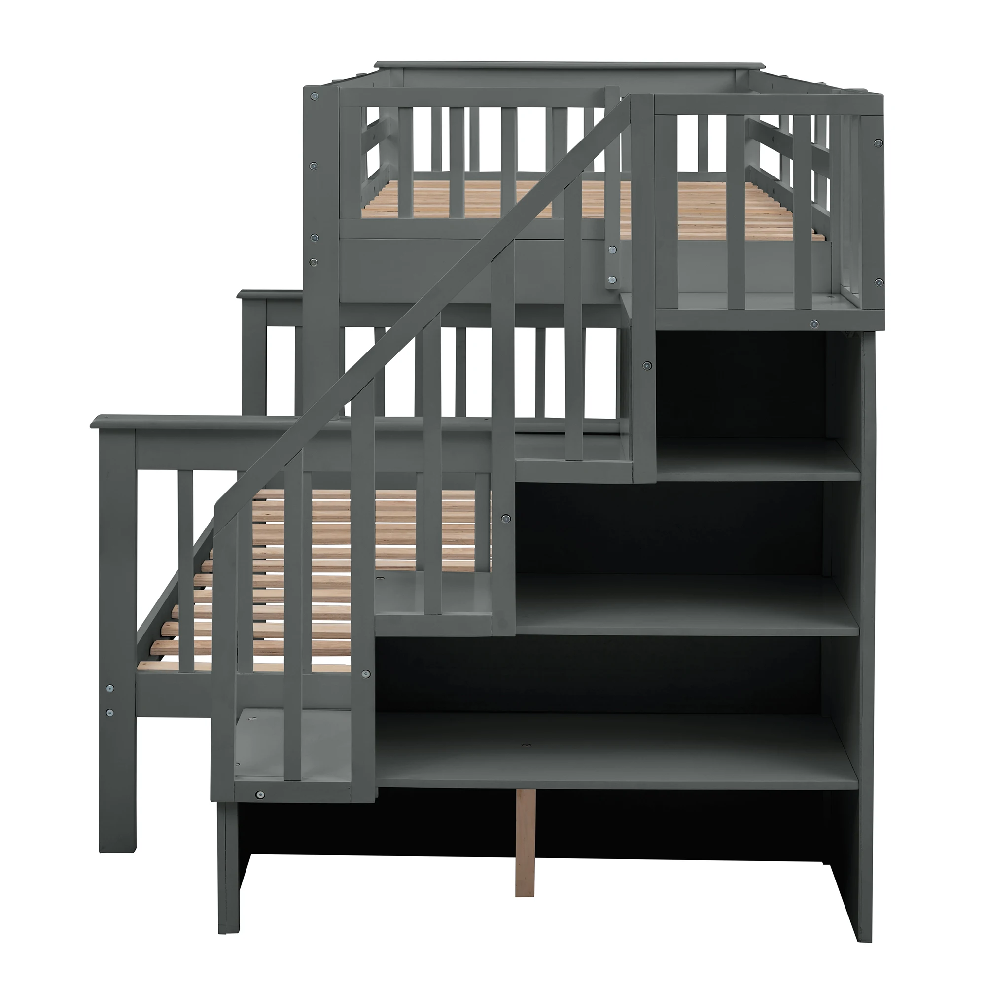· [Maximized storage space] Four compartments of different sizes hide underneath the stairs of this bunk bed and are perfect for you to store quilts, bed sheets and other necessities. On top of that, you can store books and toys, making room-tidying a breeze. Functional and aesthetic, this bunk bed will enhance any bedroom.