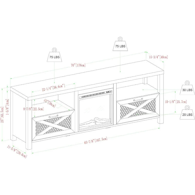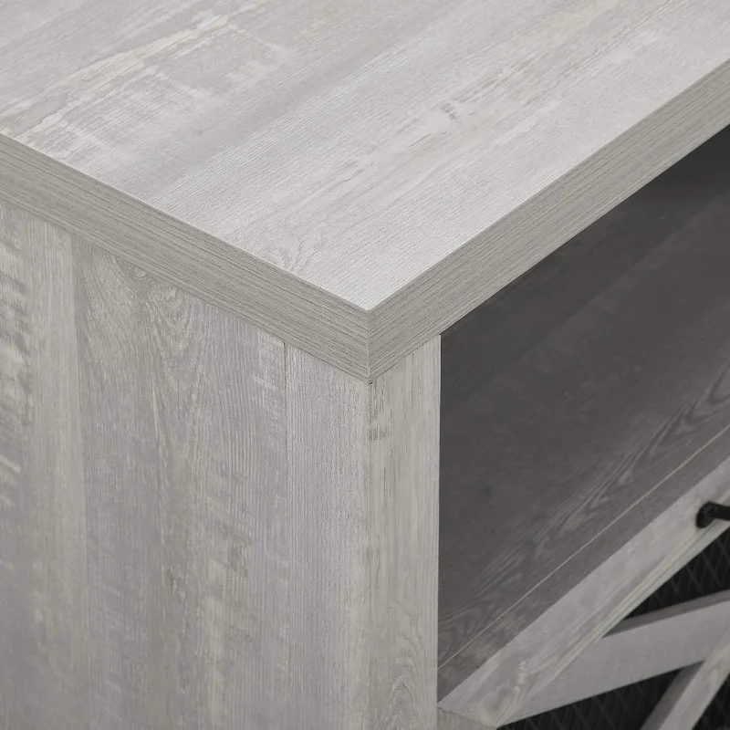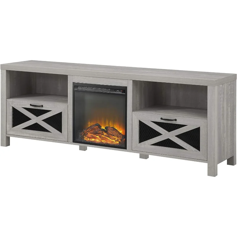 Walker Edison Calgary Industrial Farmhouse X-Drawer Metal Mesh and Wood Fireplace TV Stand for TVs up to 80 Inches, 70 Inch