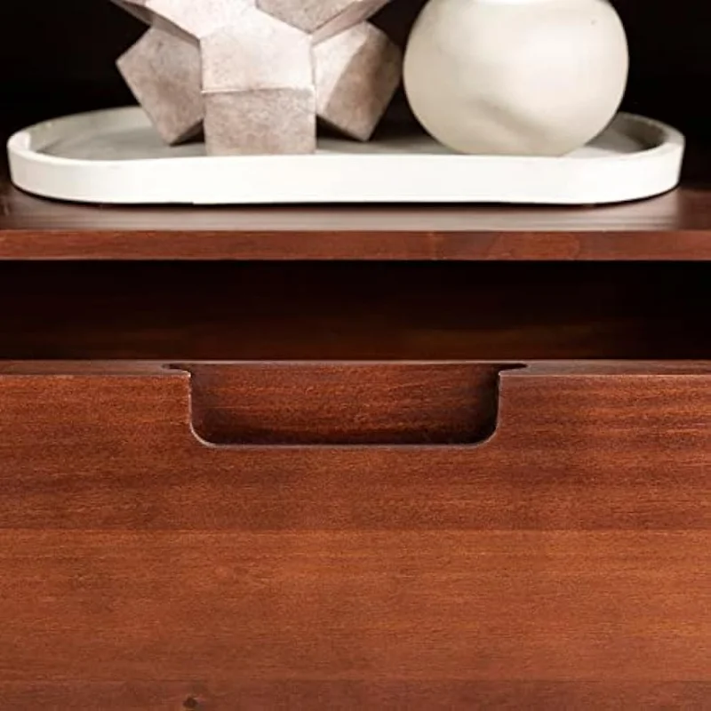 Walker Edison Millie Mid Century Modern 3 Drawer Solid Wood Low Stand for TVs up to 80 Inches, 70 Inch, Walnut