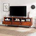 Curate a stylish refuge that invites you to stay a while with this Mid-century modern TV console. Function meets form with its humble yet sleek design that showcases a modern Scandinavian-inspired simplicity and a tasteful blend of open and closed storage space. Three drawers offer a hidden alcove for your prized movie collection, gaming accessories, or hosting essentials, while three open storage cubbies and cord management ports provide a spot for media components. Its solid wood build responsibly sourced from renewable forests is sure to bring you all the solace and comfort you need for countless cozy nights in.