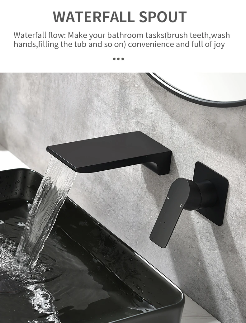 Wall Mount Tub Filler Waterfall Bathtub Faucet High Flow Bath Filler Faucet Bathroom Faucets with Rough-in