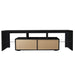 Large Storage: 63" W x 14" D x 18" H. This under TV is suitable for Up to 70-inch TV. The black TV stand features two drawers and open shelves. Plenty of storage space for your entertainment consoles, you can put Xbox, PS4 and even books and magazines in the cabinet that can help you keep your home tidy and clean