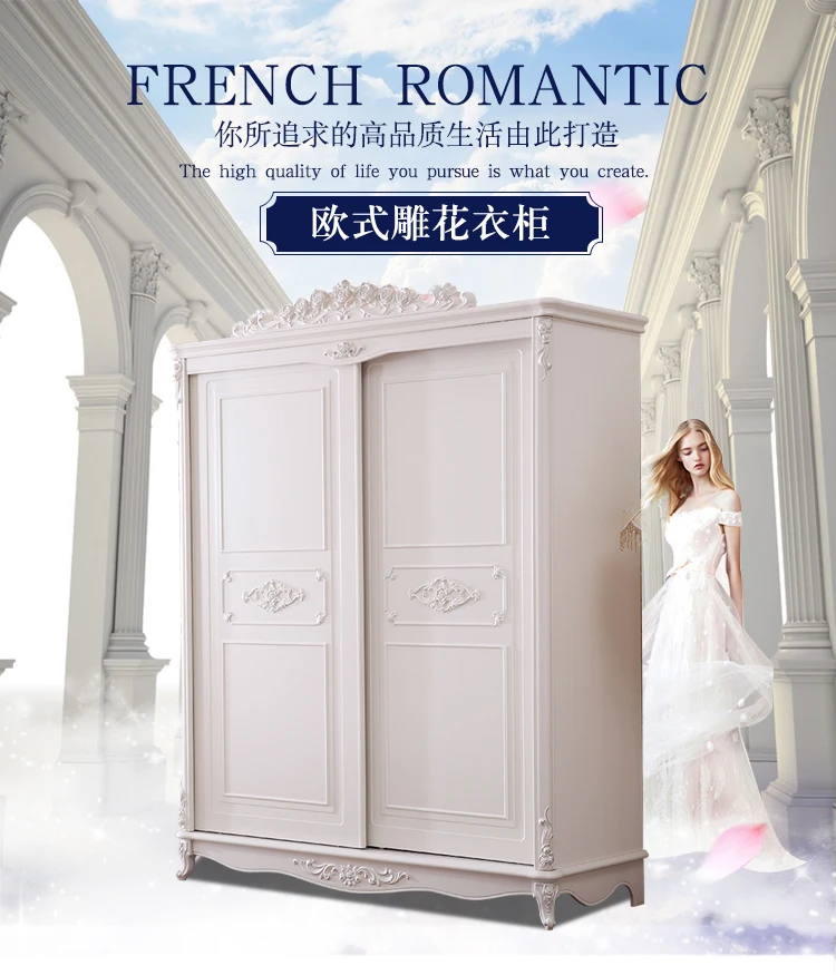 White European Wardrobe Wooden Luxury Queen Size Wardrobe Organizer Waterproof Parfume Szafa Tekstylna Na Furniture For Bedroom