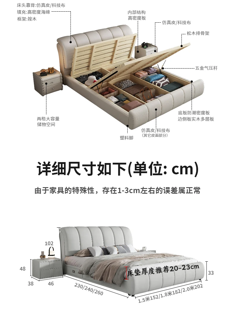 White Queen Frame Bed European Headboard Soft King Size Human Bed Double Human Floor Muebles Para Dormitorio Nordic Furniture