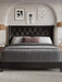 Wingback Platform Bed Frame with Headboard with Wood Slat Support and Square Stitched Headboard