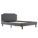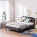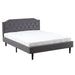 Wood Bed Frame Upholstered Bed with Diamond Buckle Decoration, Linen Dark Gray Queen Bed Easy to Assemble Stylish and Modern