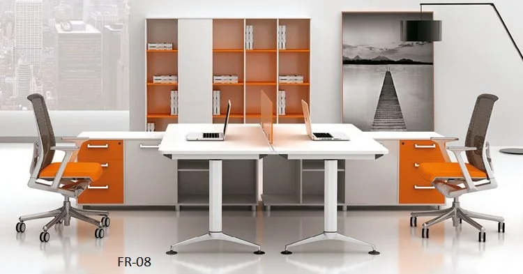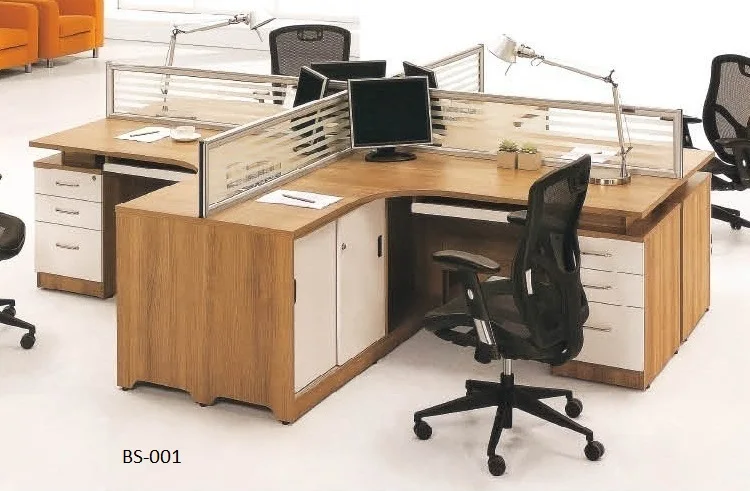 Wooden office cubicle modular furniture open clerk curved 2 seat l shape executive workstation table with glass partition
