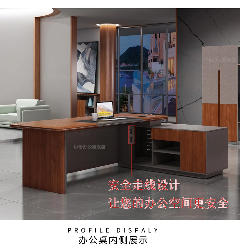 Writing Corner Work Desk Reception Boss Reception Wooden Executive Table Modern Shelf Escritorio Con Cajones Office Furniture