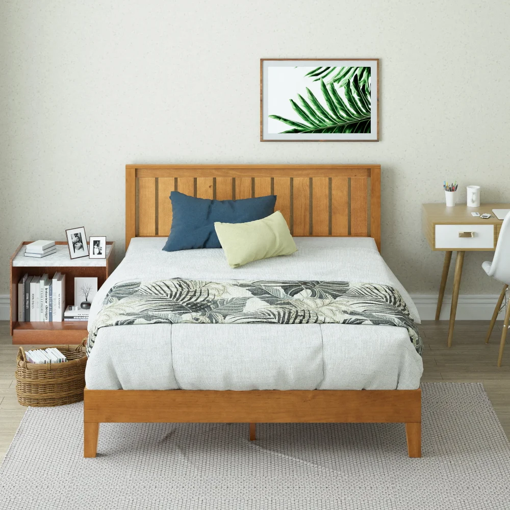 Zinus Alexia Deluxe Wood Platform Bed Frame with Headboard, Rustic Pine, Queen bed bedroom furniture